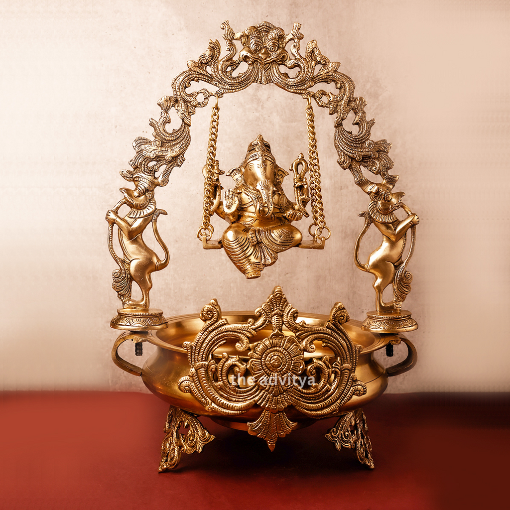 An urli bowl, often filled with water and adorned with flowers and floating candles, makes for an exquisite decorative piece. It's perfect for adding a festive touch to any home or office.